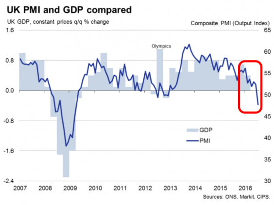 “July saw a dramatic deterioration in the economy, with business activity slumping at the fastest rate since the height of the global financial crisis in early-2009.