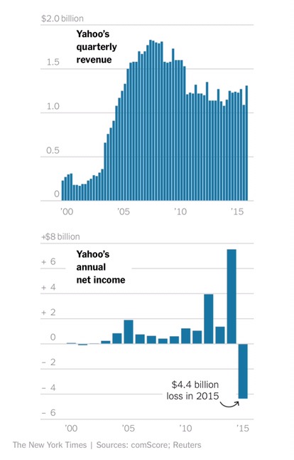 Yahoo announces deal to sell core assets for $4.8 bn to VerizonSo what was the main reasons behind it; after years of tremendous growth, Yahoo’s revenue declined after the financial crisis. It also has lost its competitive endge more recently.