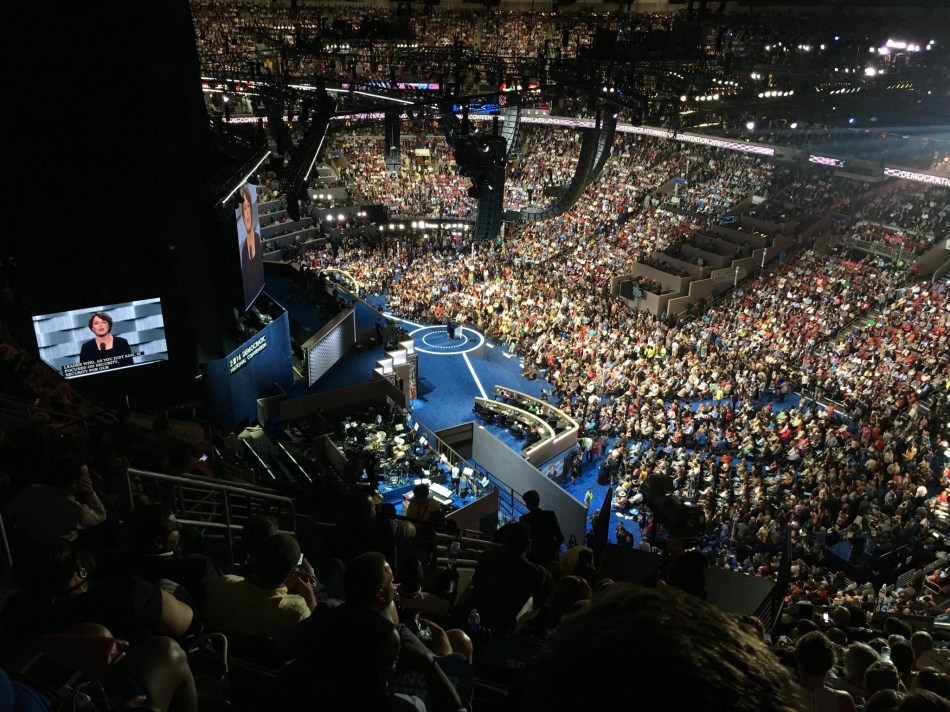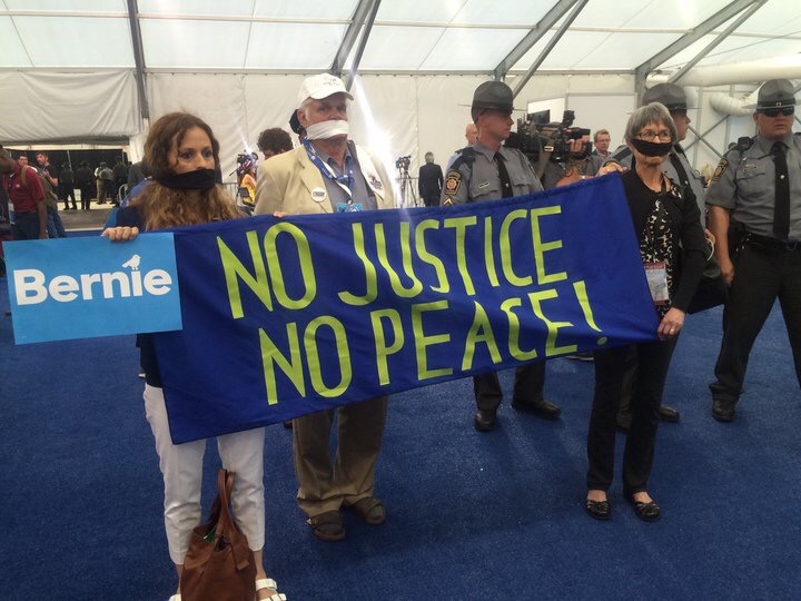 Meanwhile Bernie supporters walk out of DemConvention to protest Hillary’s nomination, while police shut down media tent.