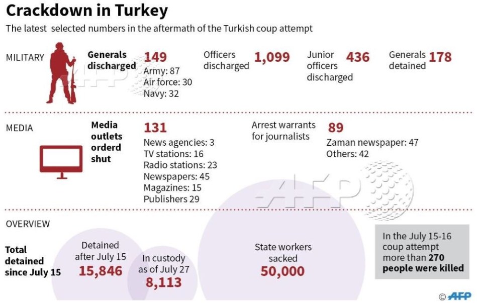(AFP)-Latest numbers in Turkey’s crackdown after the July 15 attempted coup