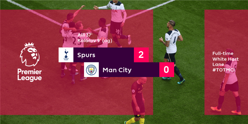 “It’s massive, a big statement for us. We stuck to the gameplan and showed what we were capable of” – Dele AlliSpurs dominated from the start and were in front early on when Aleksandar Kolarov sliced Danny Rose’s cross into his own net after nine minutes.