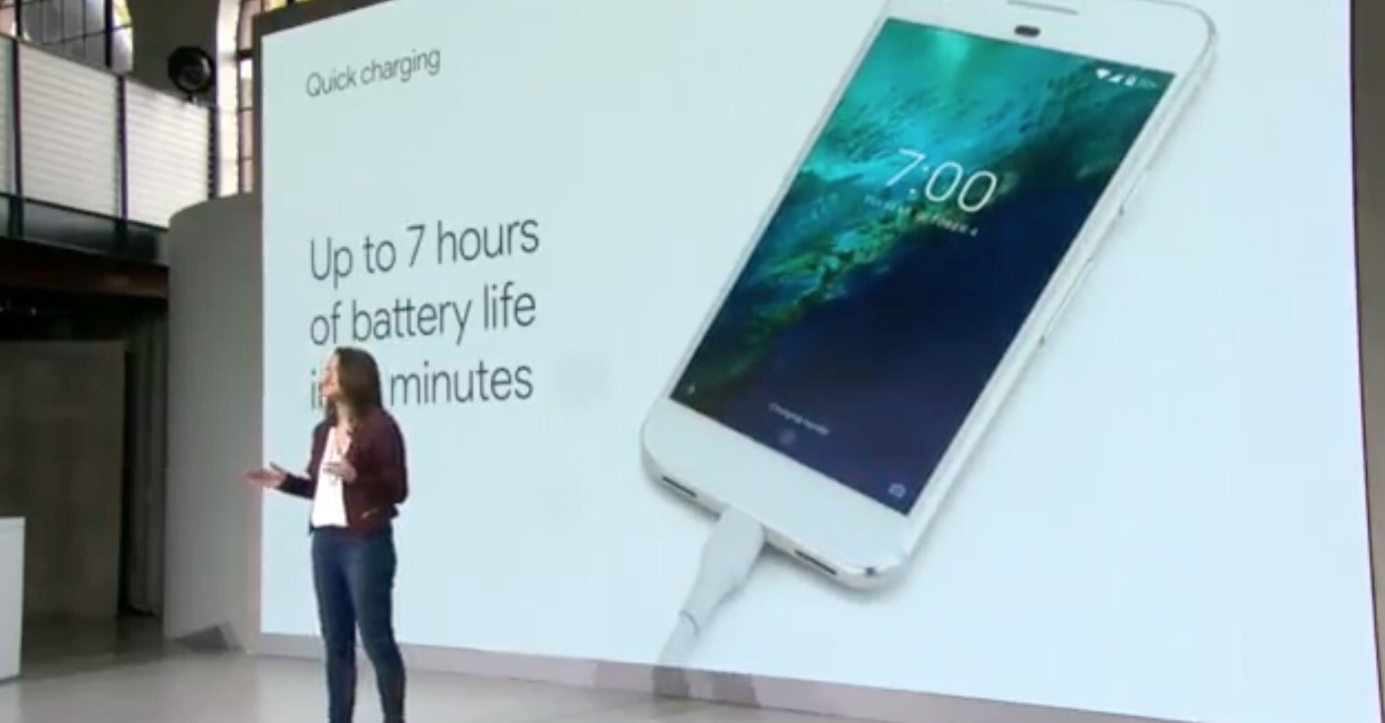 USB-C charging, Google’s Sabrina Ellis tells us, gets you 7 hours of battery in 15 minutesYour Google Assistant will even recognize what’s on your #Pixel screen, so you can get help in context. #madebygoogle