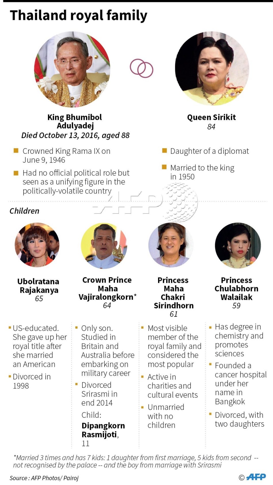 Asia FactFile FactFile: The Thai Royal Family by MDWLive.netOctober 14, 2016 The World’s longest serving Monarch died on Thursday. Here are all the facts. A chronology of Thailand’s late King @AFP Share this: Click to share on WhatsApp (Opens in new window) WhatsApp Click to share on X (Opens in new window) X Click to share on Facebook (Opens in new window) Facebook More Click to email a link to a friend (Opens in new window) Email Like Loading... Post navigation Previous Post Next Post