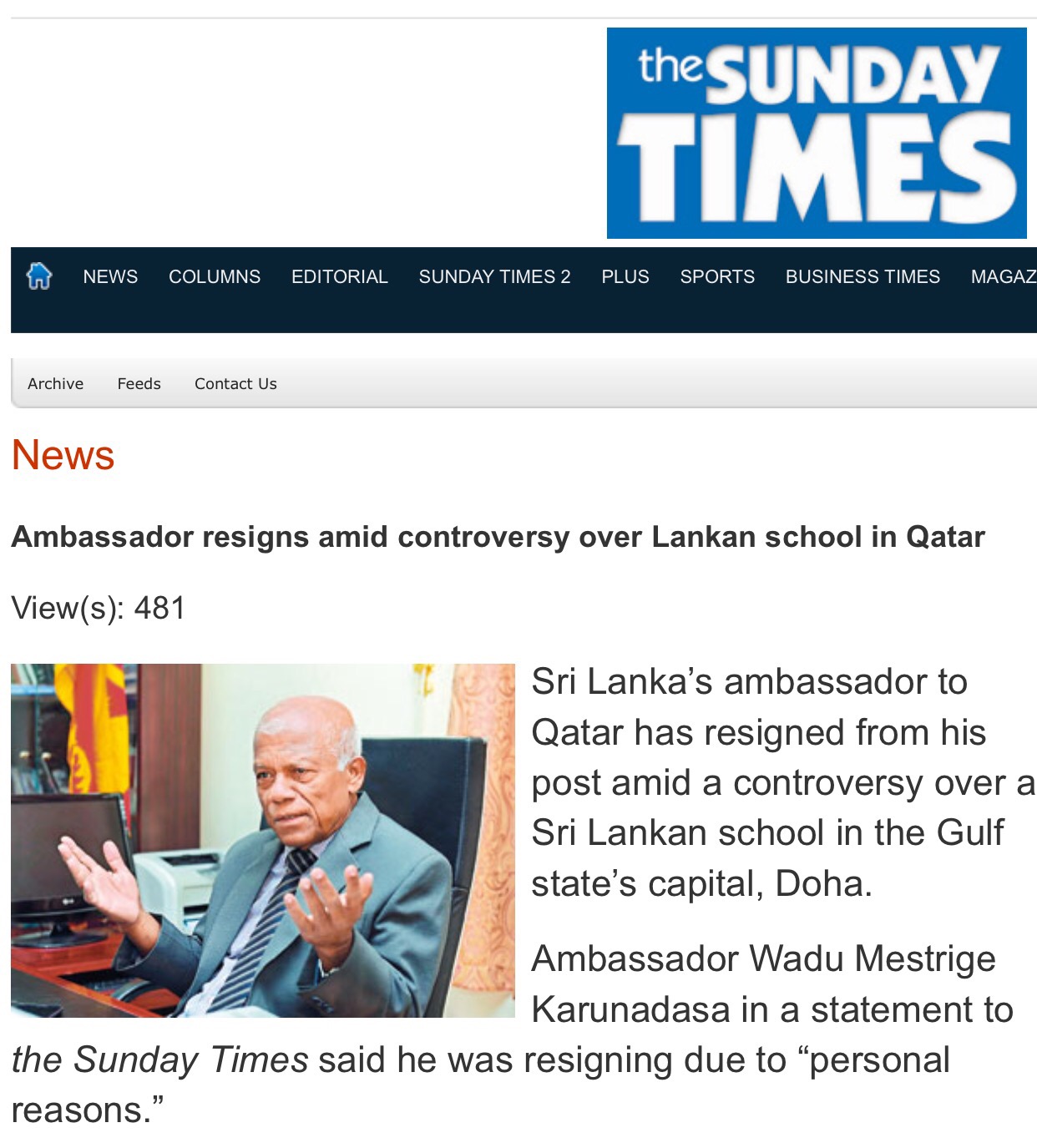 http://www.sundaytimes.lk/161016/news/ambassador-resigns-amid-controversy-over-lankan-school-in-qatar-212725.html