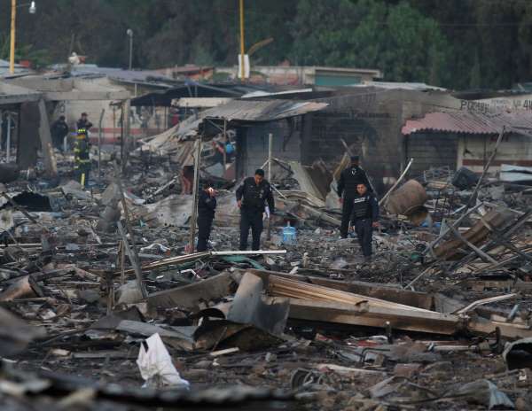 The conflagration, in the suburb of Tultepec, set off a quickfi View of the utter destruction caused by a huge blast in a fireworks market in Mexico City on December 20, 2016 killing at least nine people and injuring 70, according to police.