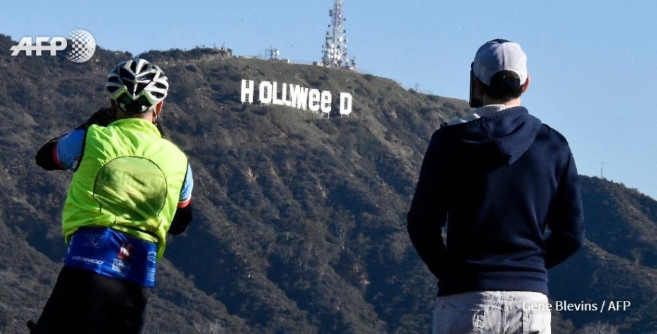 Washington (AFP) – The famed Hollywood sign high in the hills over Los Angeles got a little higher on Sunday, when someone altered two of its letters to make it read “Hollyweed.”