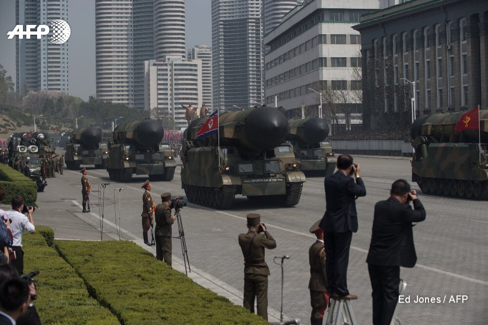 It came after North Korea displayed nearly 60 missiles — including what is suspected to be a new intercontinental ballistic missile — at a parade on Saturday to mark the 105th birthday of its founder Kim Il-Sung.