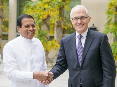 8am President Maithripala Sirisena meets Australian PM Malcolm Turnbull at the National Parliament building in Canberra