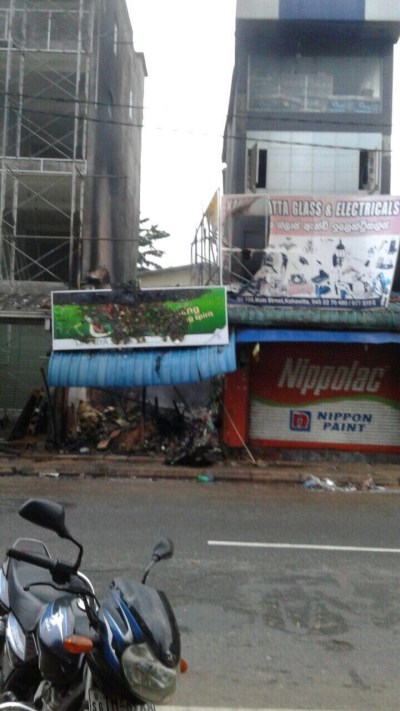 7am Muslim organizations claims that yet another Muslim owned shop has been burnt down,carpet shop in Wijerama in Akurana was burned and destroyed over night.