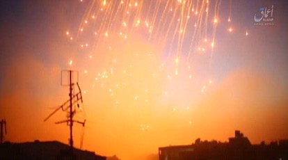 Footage of coalition strikes shows burning white phosphorus raining down onto buildings in Raqqa last week