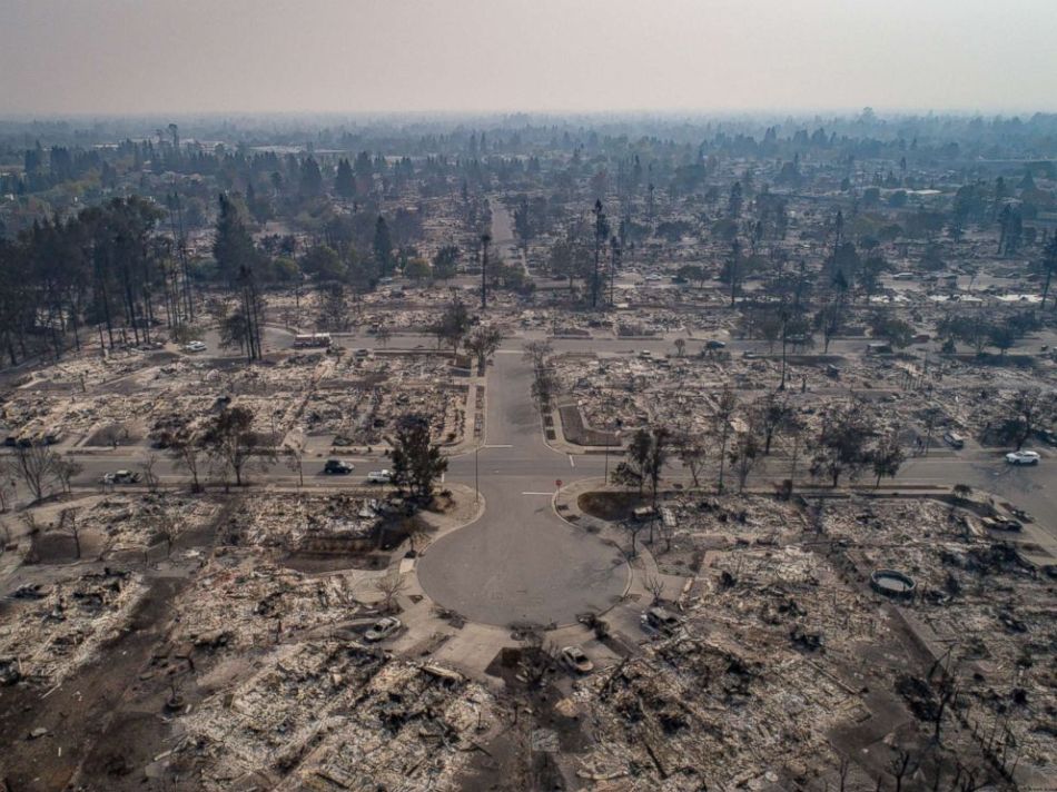 An aerial view of homes burned by wildfire in the Coffey Park neighborhood of Santa Rosa, Calif., Oct. 10, 2017.
