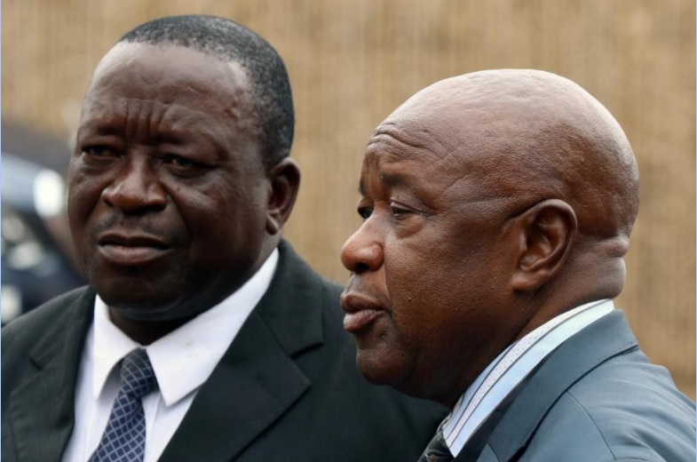 Zimbabwean War Veterans leader Chris Mutsvangwa (R), arrives at a meeting of the ruling ZANU-PF party in Harare, Zimbabwe November 19, 2017. REUTERS/Philimon Bulawayo