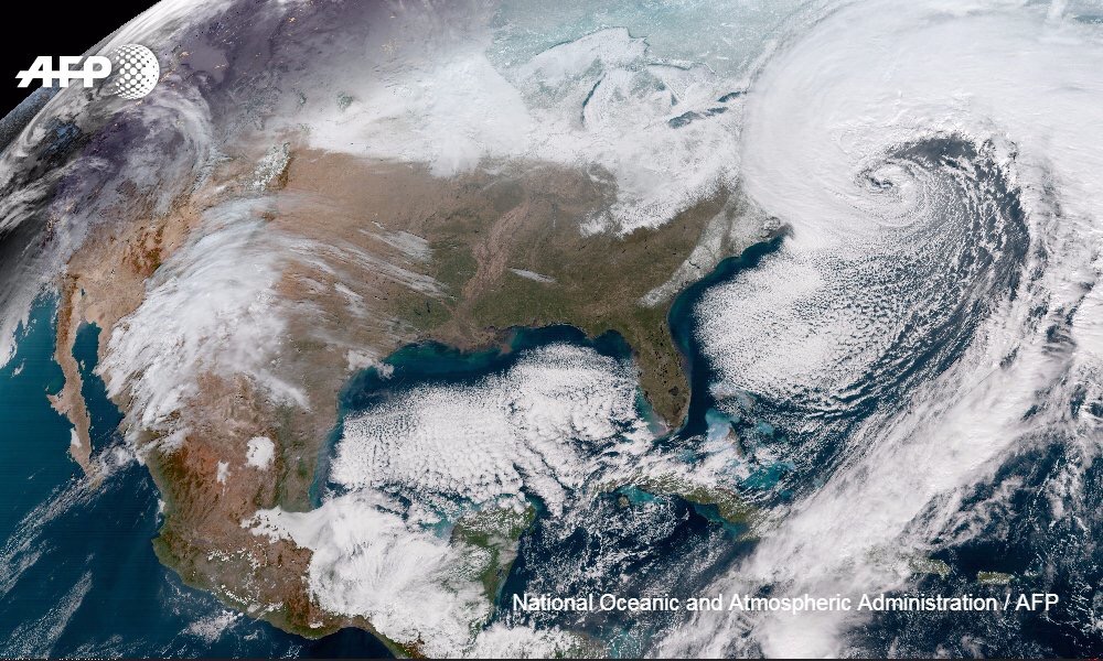New York (AFP) – A giant winter “bomb cyclone” walloped the US East Coast on Thursday with heavy snow and freezing cold that made for treacherous travel conditions and bone-chilling misery.Four people were reported killed in the southeastern states of North and South Carolina, where icy roads sent vehicles skittering.