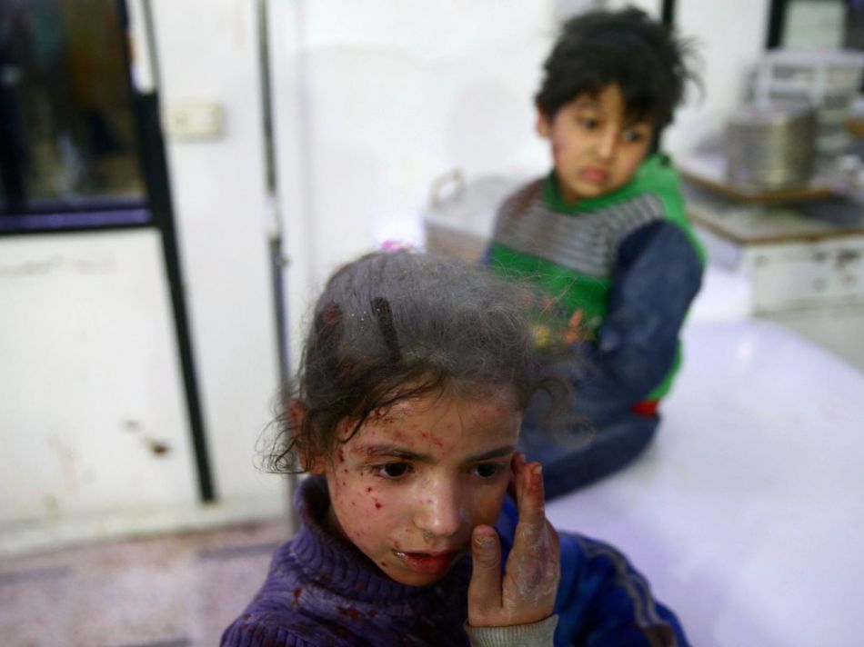 Wounded children are seen in a hospital in the besieged town of Douma, eastern Ghouta