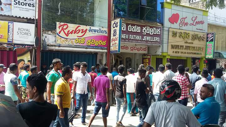 The men rush into a multi-story building opposite the mosque. A local SLPP politician, Samantha Perera, can be seen pointing at the higher floors of the building.
