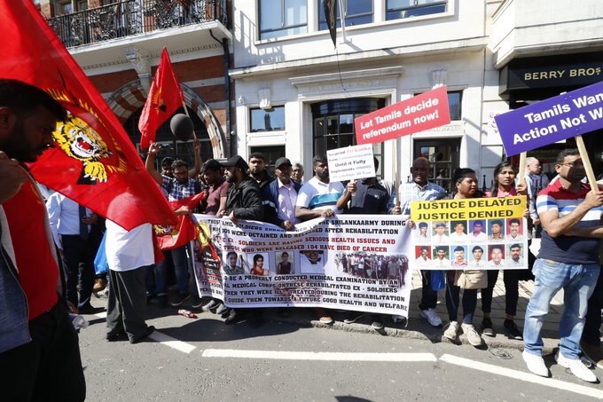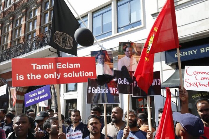 A pro – LTTE demonstration was staged in front of the Commonwealth summit premises in London, against the Sri Lankan President Maithripala Sirisena.