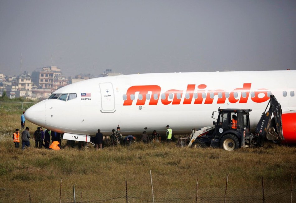 Nobody was hurt in the incident but incoming flights to the Nepali capital were diverted while authorities tried to move the Malindo Airlines Boeing 737, which was stuck in mud.