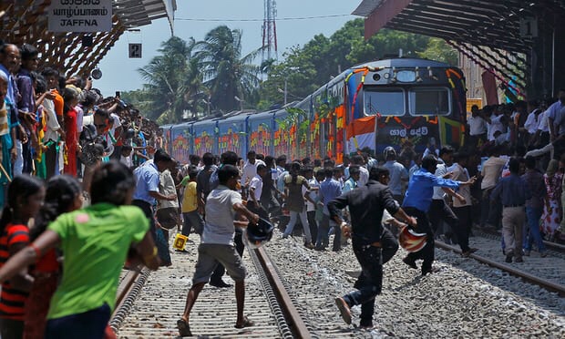 The Queen of Jaffna train arrives in Jaffna. Photograph: Eranga Jayawardena/AP