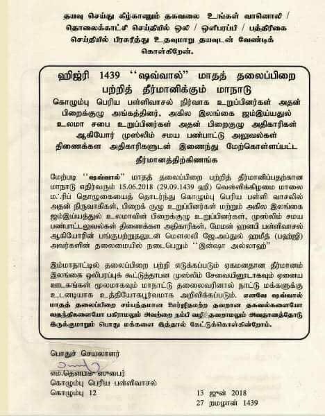 Confusion reigned within the public in Sri Lanka as the the Colombo Grand Mosque was seemingly unwilling to sight the moon early on Ramadan 28th.