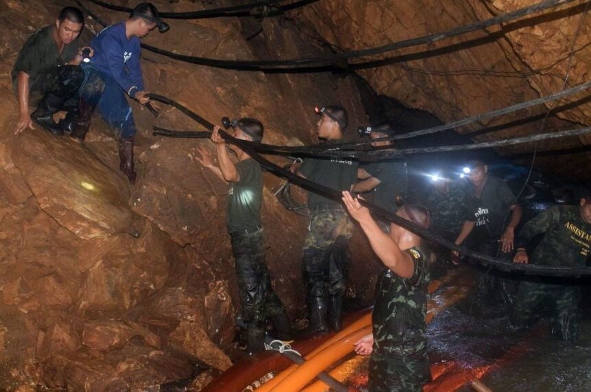 Narongsak explained that the divers had fixed rope lines along the passageway and distributed oxygen tanks along their route, allowing them to advance through the exceptionally narrow passageway unencumbered by bulky equipment. Other teams worked to pump out floodwater and divert groundwater, he said.