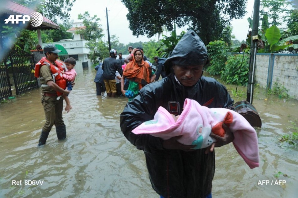Kochi (India) (AFP) – Hundreds of troops led a desperate operation to rescue families trapped by mounting floods in India’s Kerala state Thursday as the death toll reached 300 with nearly 150,000 left homeless.
