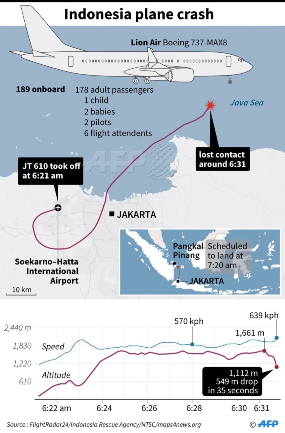 Indonesia’s National Transportation Safety Committee (NTSC) said there were 178 adult passengers, one child, two infants, two pilots and six cabin crew on board flight JT 610.