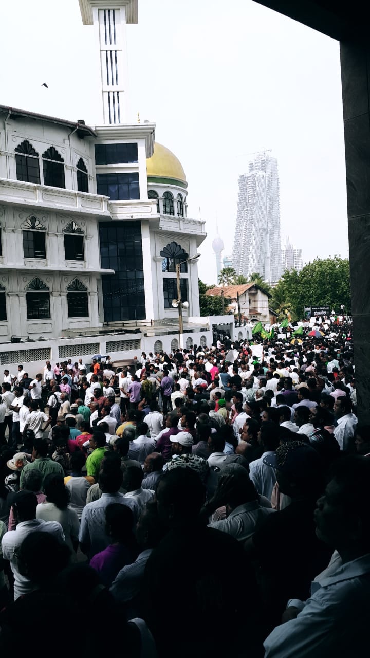 On Tuesday, thousands of protesters gathered near Wickremesinghe’s residence in the south of the capital, holding signs calling on Sirisena to “protect our democracy”.