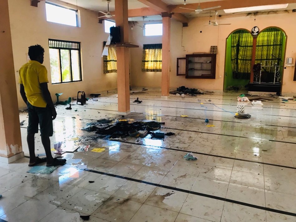 In the town of Minuwangoda, just north of Colombo, a Muslim-owned hotel and a mosque were attacked by stone-hurling mobs armed with sticks.
