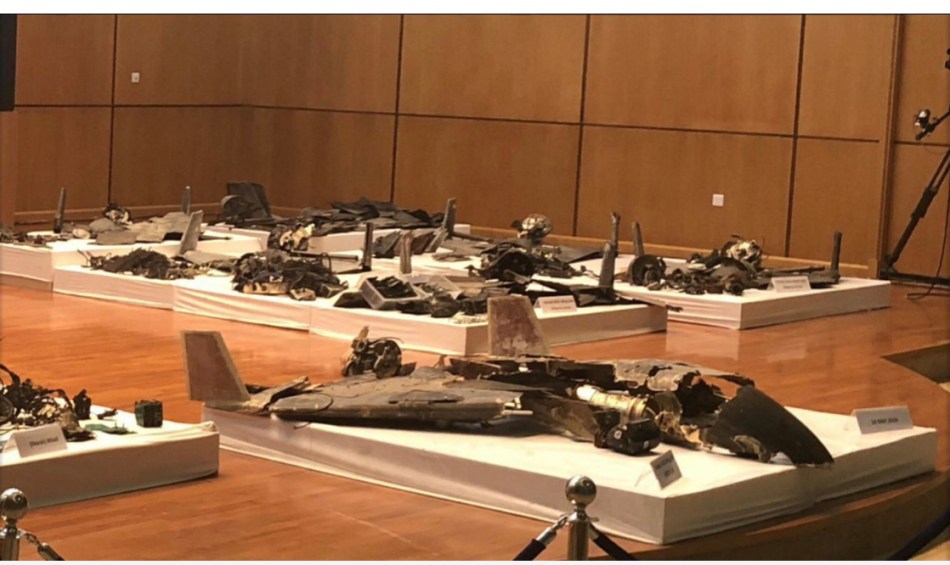 Saudi Colonel Turki bin Saleh al Malki displayed the wreckage of drones and cruise missile had been used in the attack.