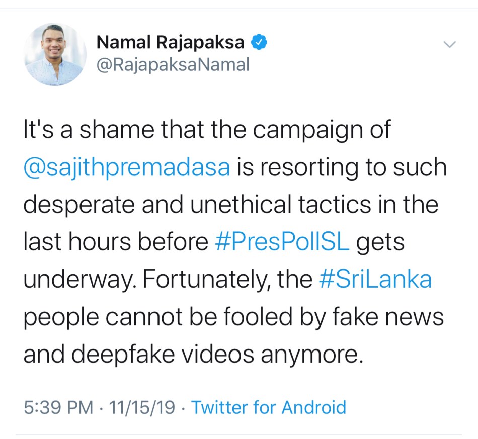 The United States says a video circulating on social media depicting a State Department spokeswoman allegedly making a comment on Sri Lanka Podujana Peramuna Presidential candidate, Gotabaya Rajapaksa, is fake.