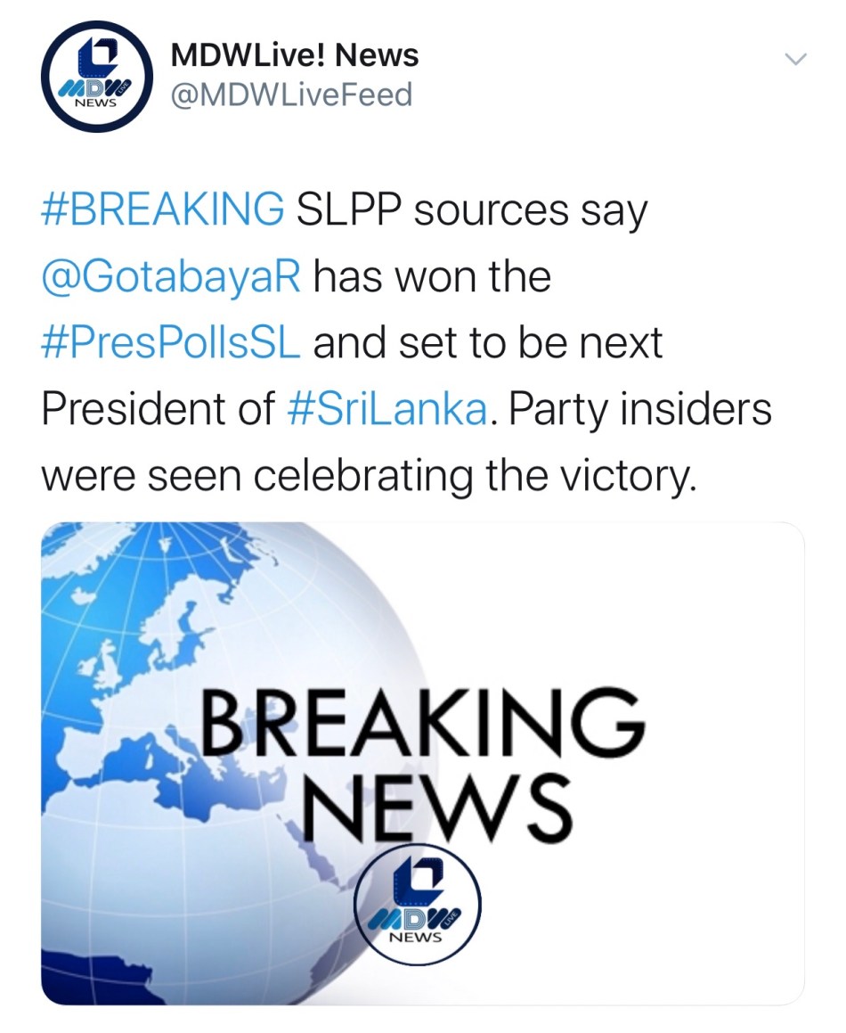“It is a clear win. We envisaged it. We are very happy that Gota will be the next president. He will be sworn in tomorrow or the day after,” spokesman Keheliya Rambukwella said.