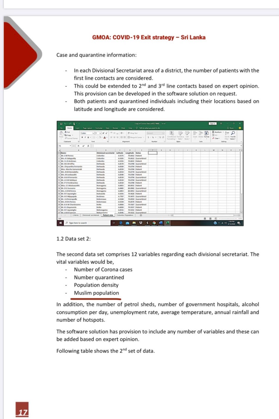 Sri Lanka’s Government Medical Official Association (GMOA) hastily amended a draft ‘COVID19 exit strategy’ for Sri Lanka after condemnation that minority Muslims were singled out and identified the Muslim population in each district secretariat area as a “risk factor” and a variable to track COVID19 risk.