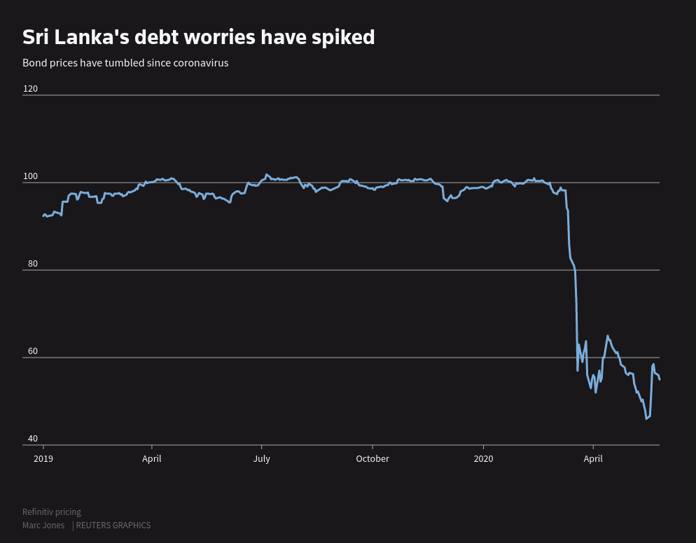Graphic: Sri Lanka’s bonds have tumbled since coronavirus took hold