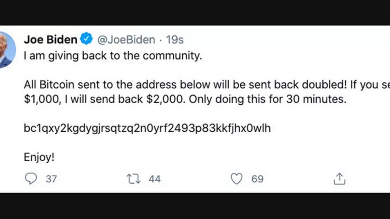 Suspected scammers have taken over a rash of high-profile Twitter accounts, including those of Joe Biden, Bill Gates, Elon Musk, Jeff Bezos and Kanye West, apparently looking to swindle users out of large sums of crypto currency.
