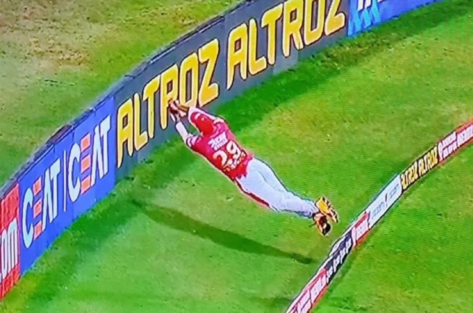 Chasing a massive 223-run target, Samson pulled a shorter one from KXIP’s Murugan Ashwin. Pooran flung himself and was airborne while pulling the ball from almost six feet inside the rope.