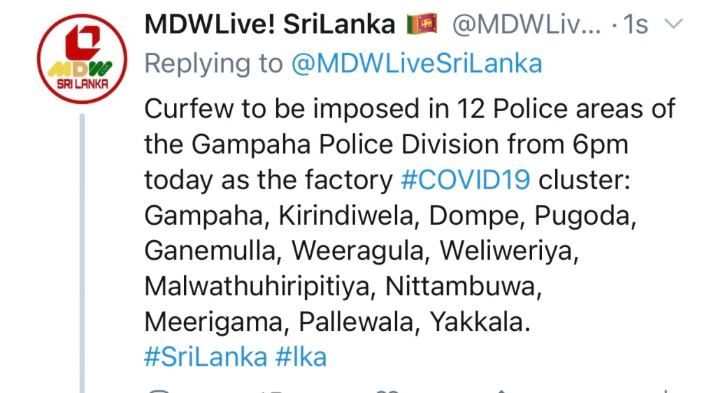 The cluster in the suburbs of Sri Lanka’s capital Colombo was identified despite the government saying it has successfully controlled the spreading of the virus.
