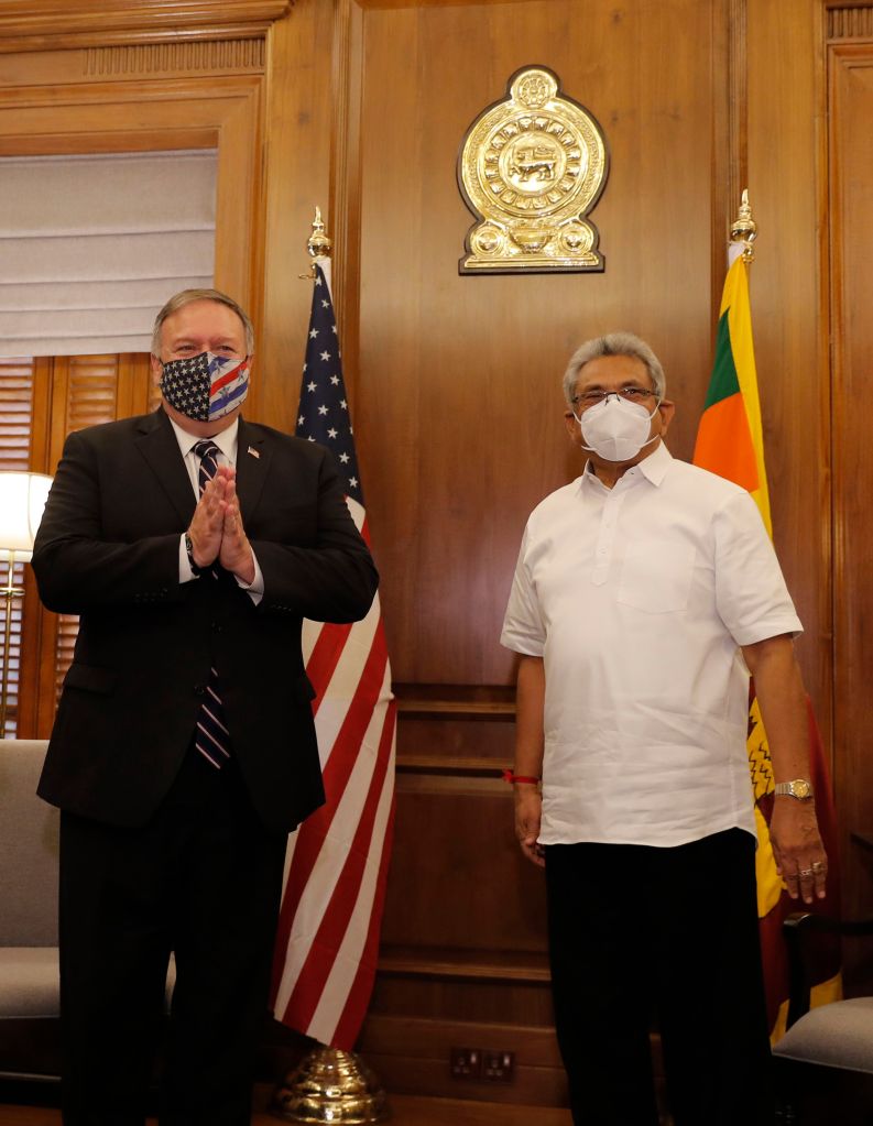 In his meeting with Rajapaska, Pompeo “stressed the importance of strengthening democratic governance, human rights protections, and of fundamental freedoms to ensure long-term stability and prosperity,” the State Department said in a statement.