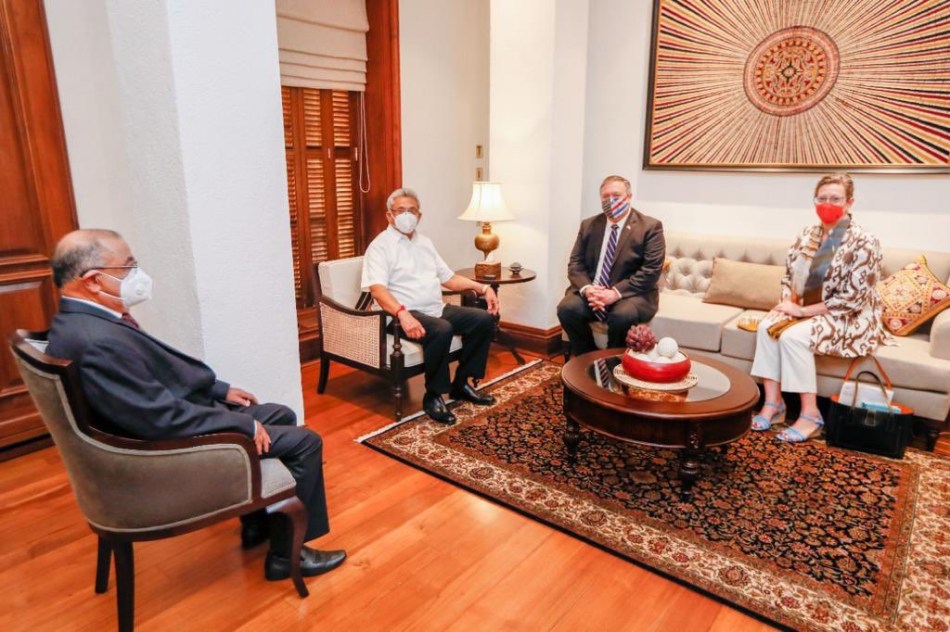Pompeo arrived in Sri Lanka from India as part of a four-leg tour aimed at bolstering allies against China’s increasing political and military inroads in the region in recent years.