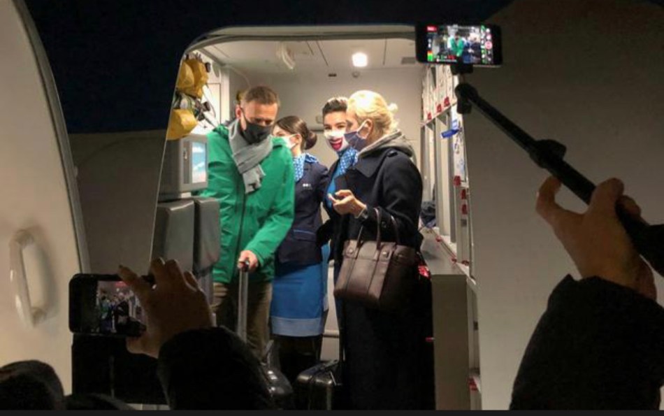 It was the first sign to those on board that Navalny’s return from Berlin, where he had been treated since August after being attacked in Russia with the military-grade nerve agent Novichok, was not going smoothly.