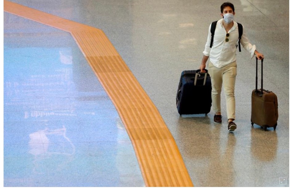 FILE PHOTO: A passenger wearing a protective face mask walks at Fiumicino Airport in Rome, Italy, May 28, 2020. REUTERS/Guglielmo Mangiapane