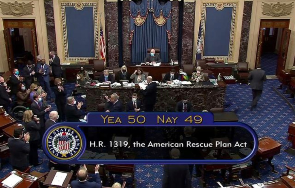 The plan passed in a 50-49 vote with the support of every Democrat but no Republicans. It is one of the largest stimulus bills in U.S. history and gives Biden his first major legislative victory since taking office in January.