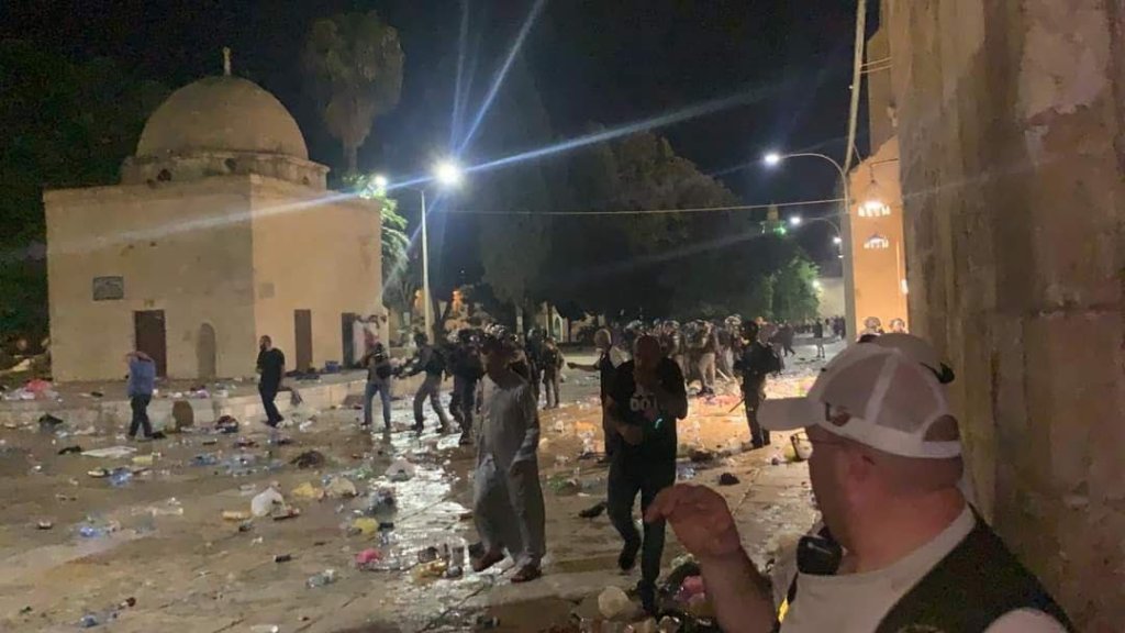 Protests erupted when Israeli police deployed heavily as Muslims were performing evening prayers at Al Aqsa during the holy month of Ramadan.