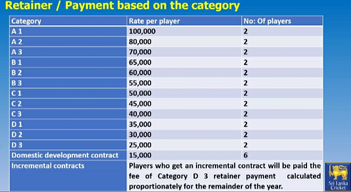 Sri Lanka Cricket officials said the base fees in the new contracts were in addition to payments for each match as well as allowances for travel outside Colombo.