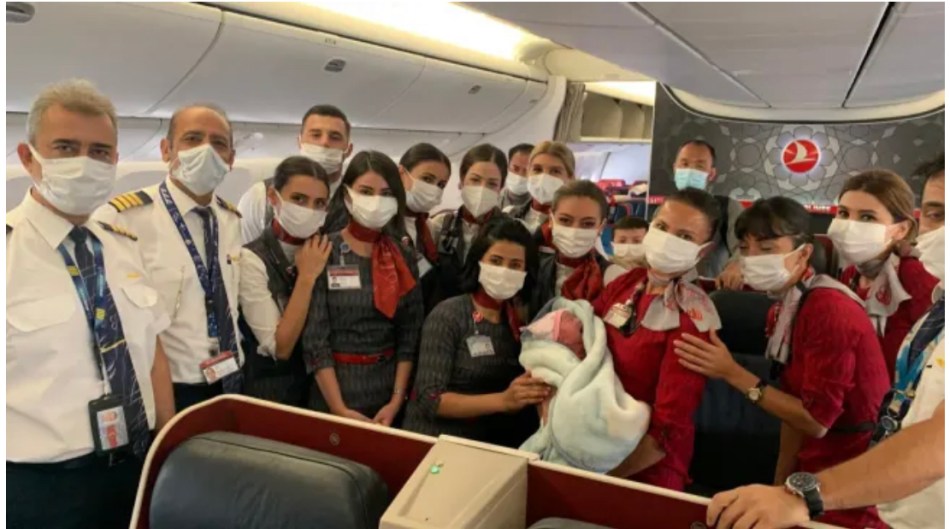 Photos and video showed Turkish Airlines crew cradling the baby and handing her to her mother.