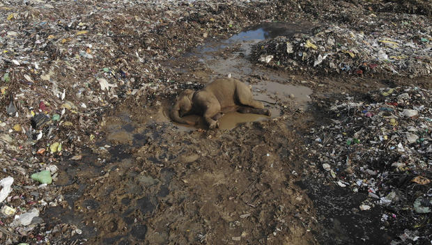 The body of a wild elephant lies in an open landfill in Pallakkadu village in Ampara district, about 130 miles east of the capital Colombo, Sri Lanka, January 6, 2022. ACHALA PUSSALLA/AP
