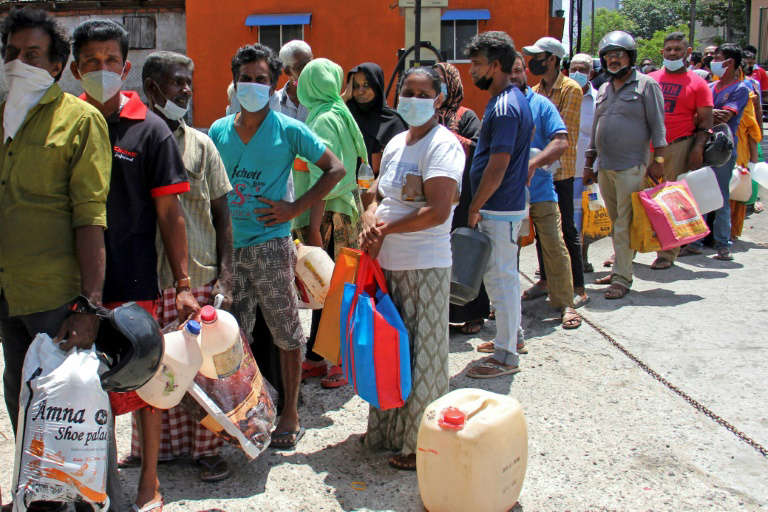 People queue to buy kerosene oil for their homes in Colombo as many essentials are in short supply