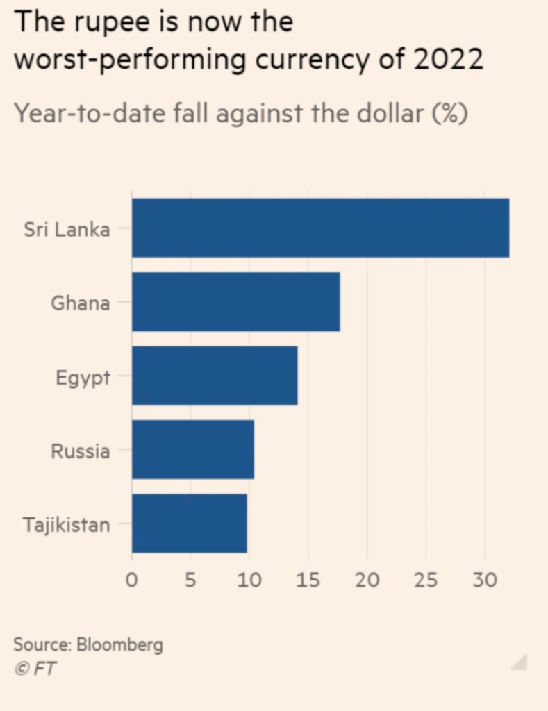 Sri Lanka’s rupee has plunged to a record low to become the world’s worst-performing currency, as President Gotabaya Rajapaksa struggles to contain a worsening economic and political crisis.