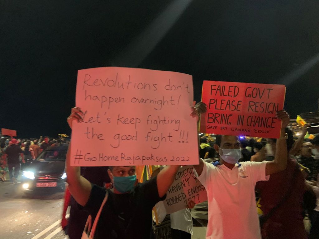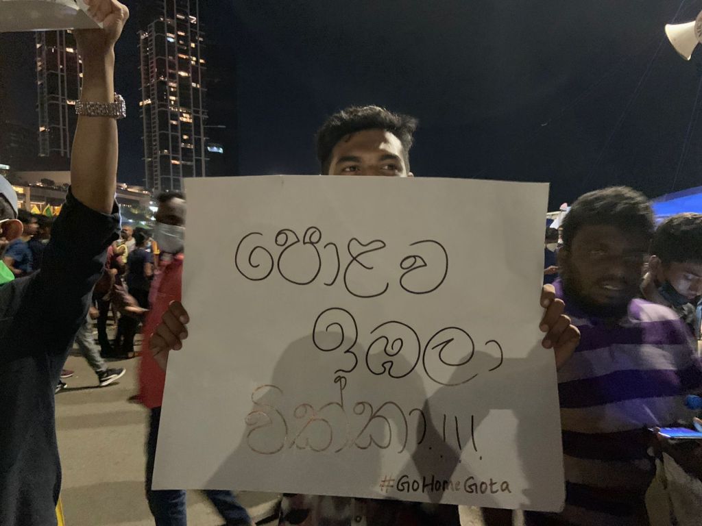 Large number of people were seen endorsing the protest despite fuel shortages and many other difficulties in public transport on the night of the Singhala Tamil New year.