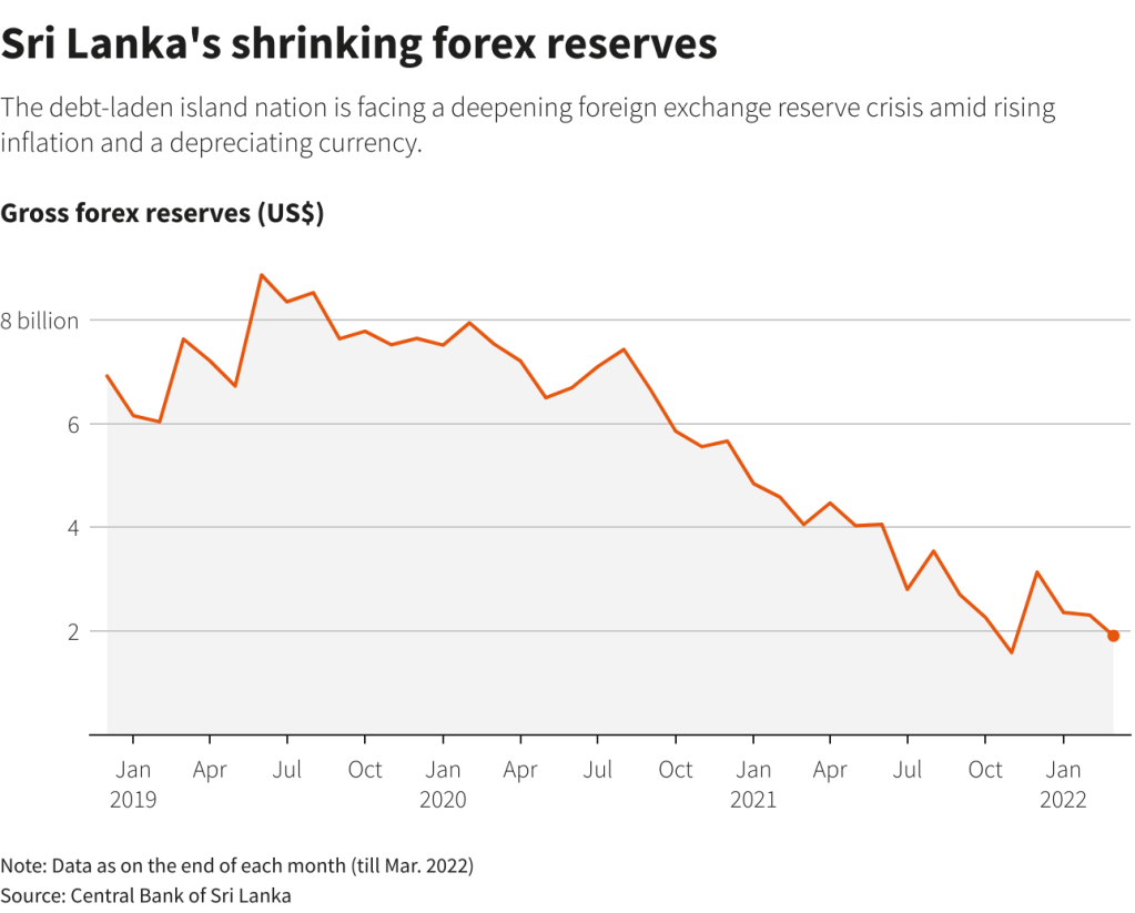By March, Sri Lanka’s reserves stood at only $1.93 billion, insufficient to even cover a month of imports, and leading to spiralling shortages of everything from diesel to some food items.
