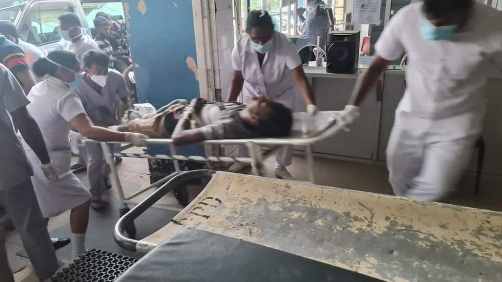 More footage emerges from a local Sri Lankan hospital as injured protestors are admitted Rambukkana. [You may find some images disturbing]
